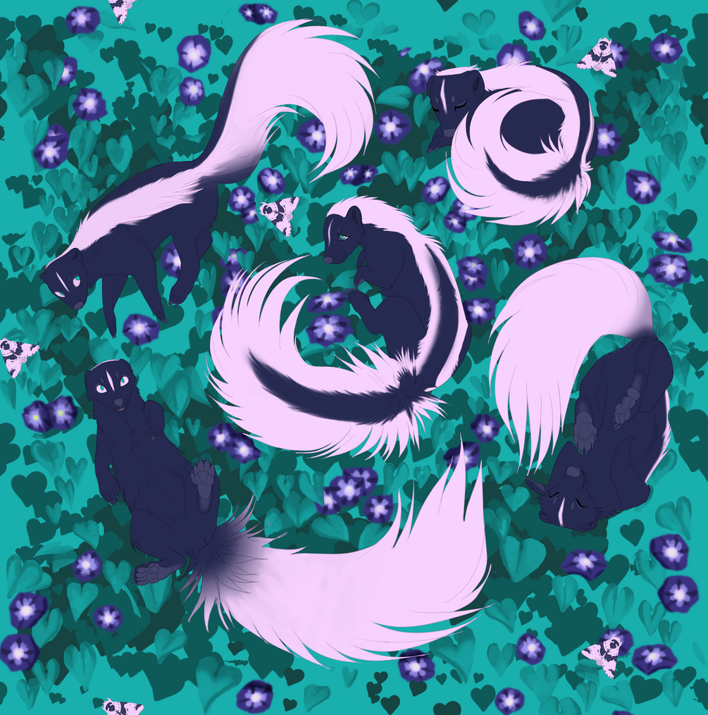 This is a tiling skunk pattern available for personal use only. This same design is available on RedBubble on various products. If you'd like to see this on a physical product, I am on RedBubble with the same screen name (earth midnight). Otherwise you're welcome to use this for personal web design, icons, so on.